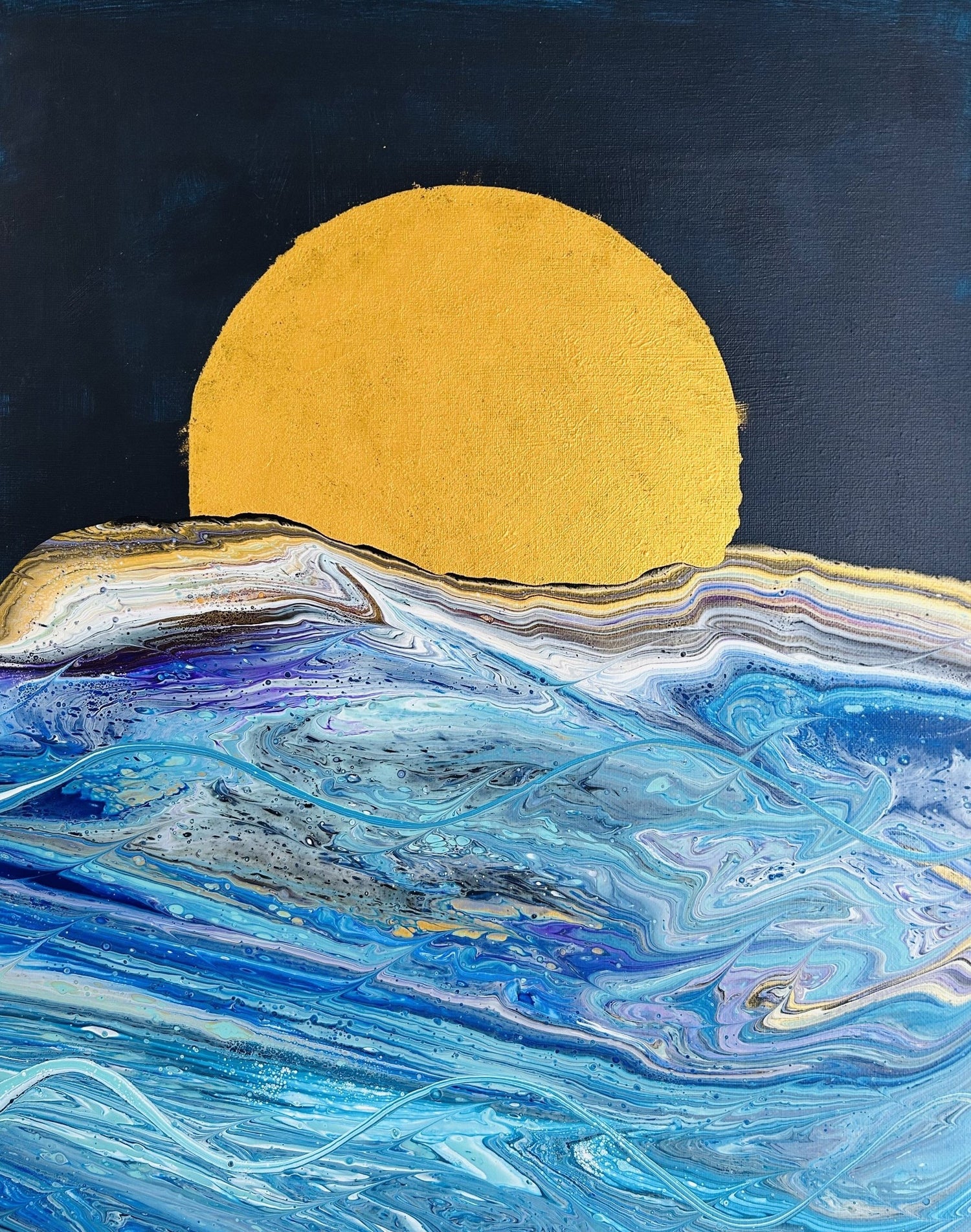 40cm x 50 cm acrylic artwork on canvas. Vibrant sunset over the ocean.