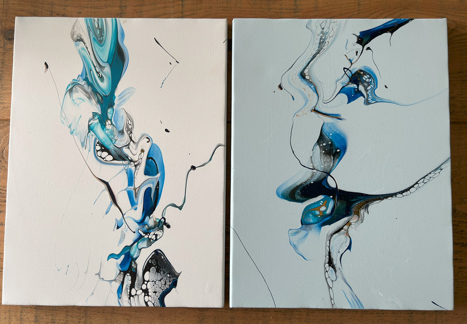 Increasing the negative space on both canvases (40cm x 30cm) highlights the intricate details created by cells and flowing lines.