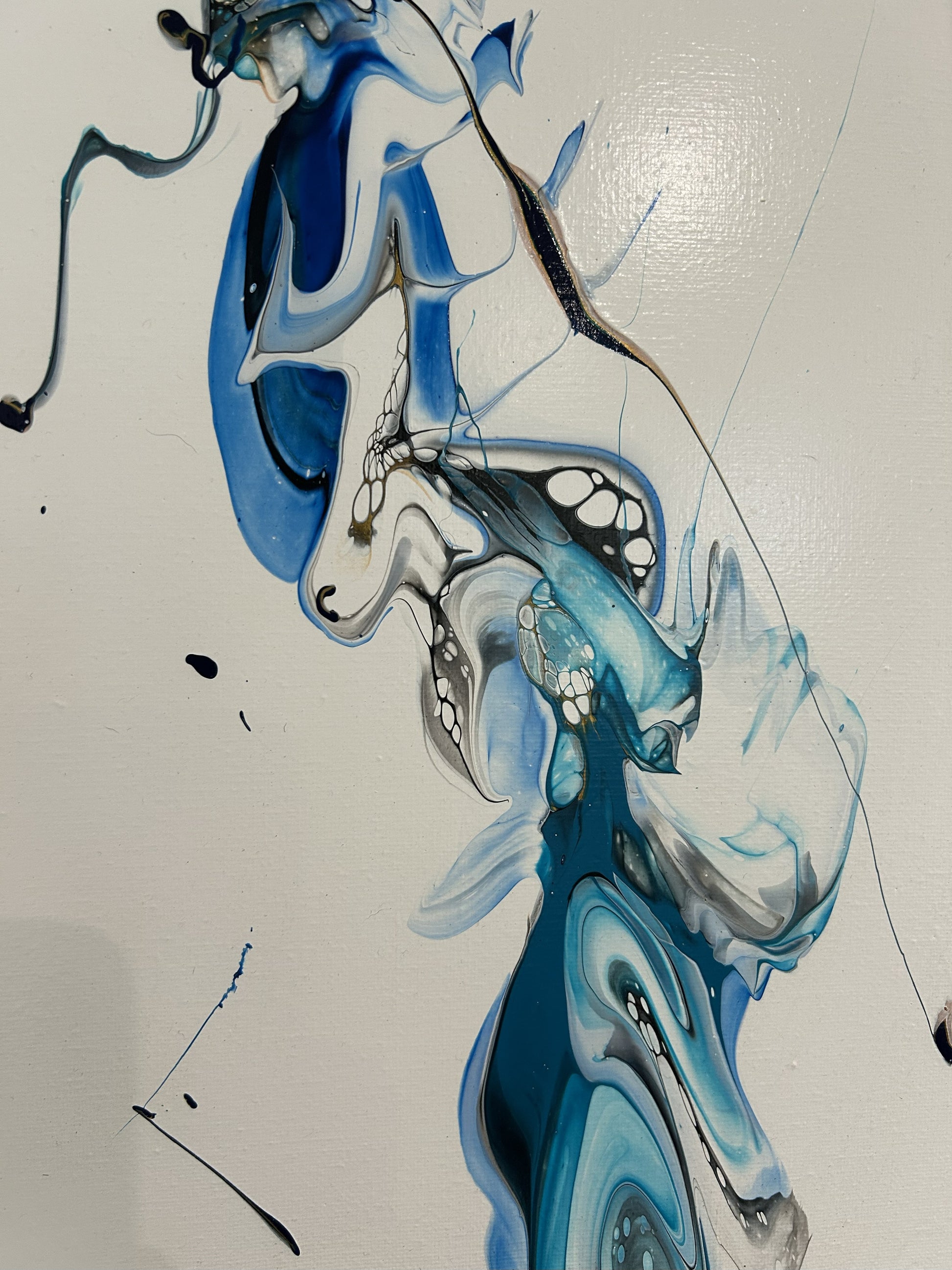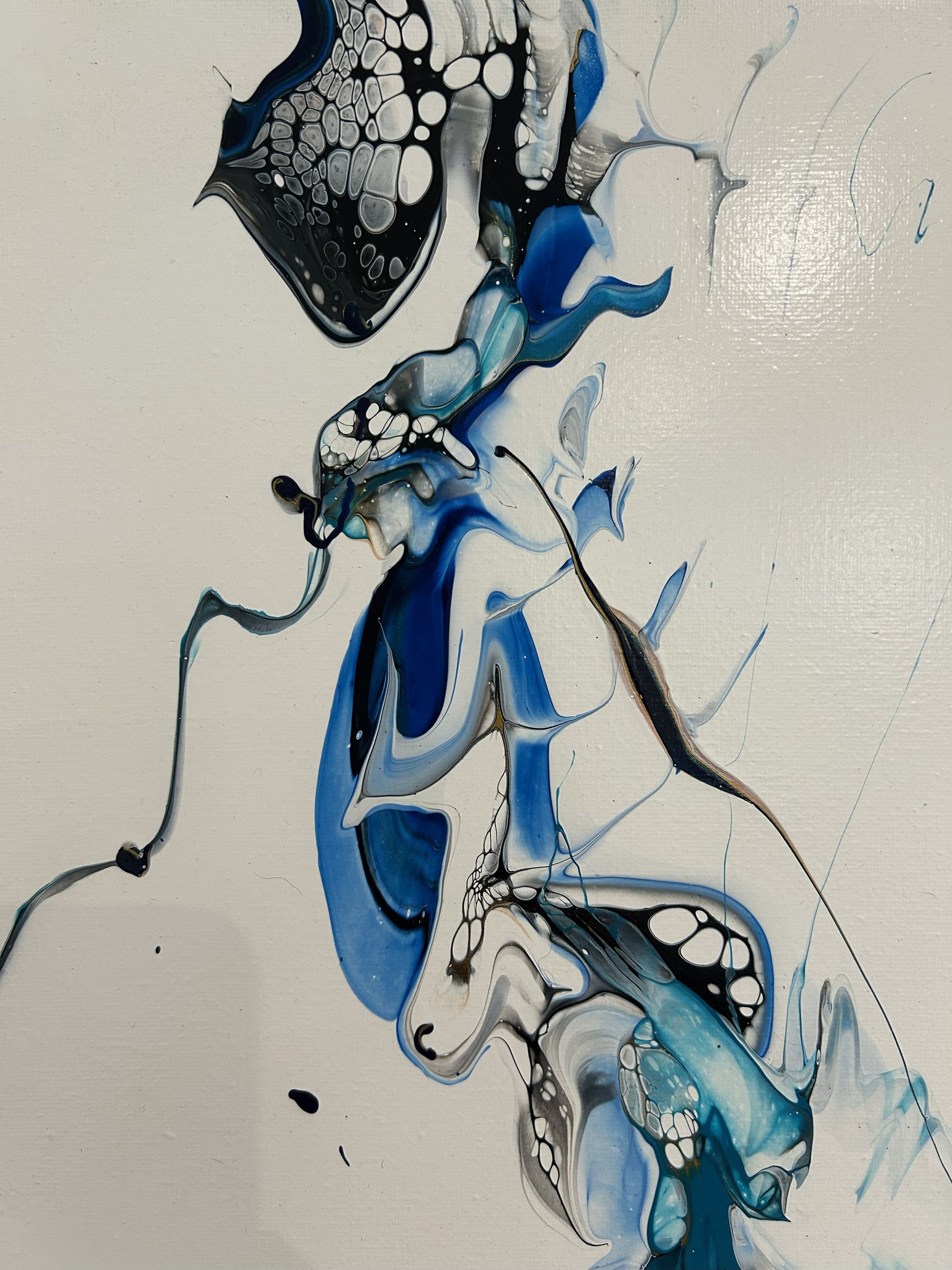 White negative space provides backdrop for the fine details in the cells, lines and swipes. A striking piece for your space.