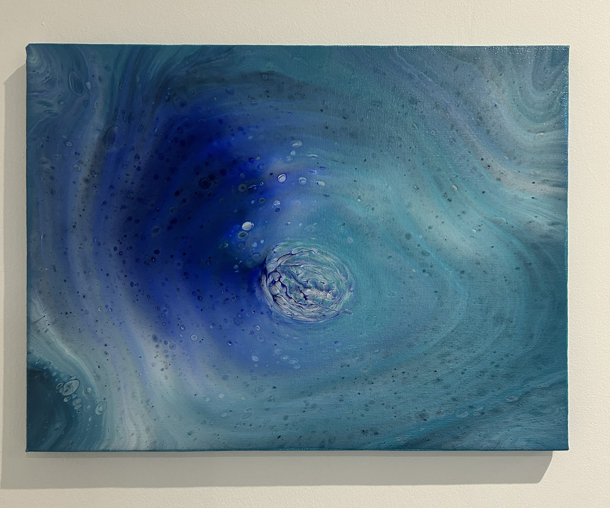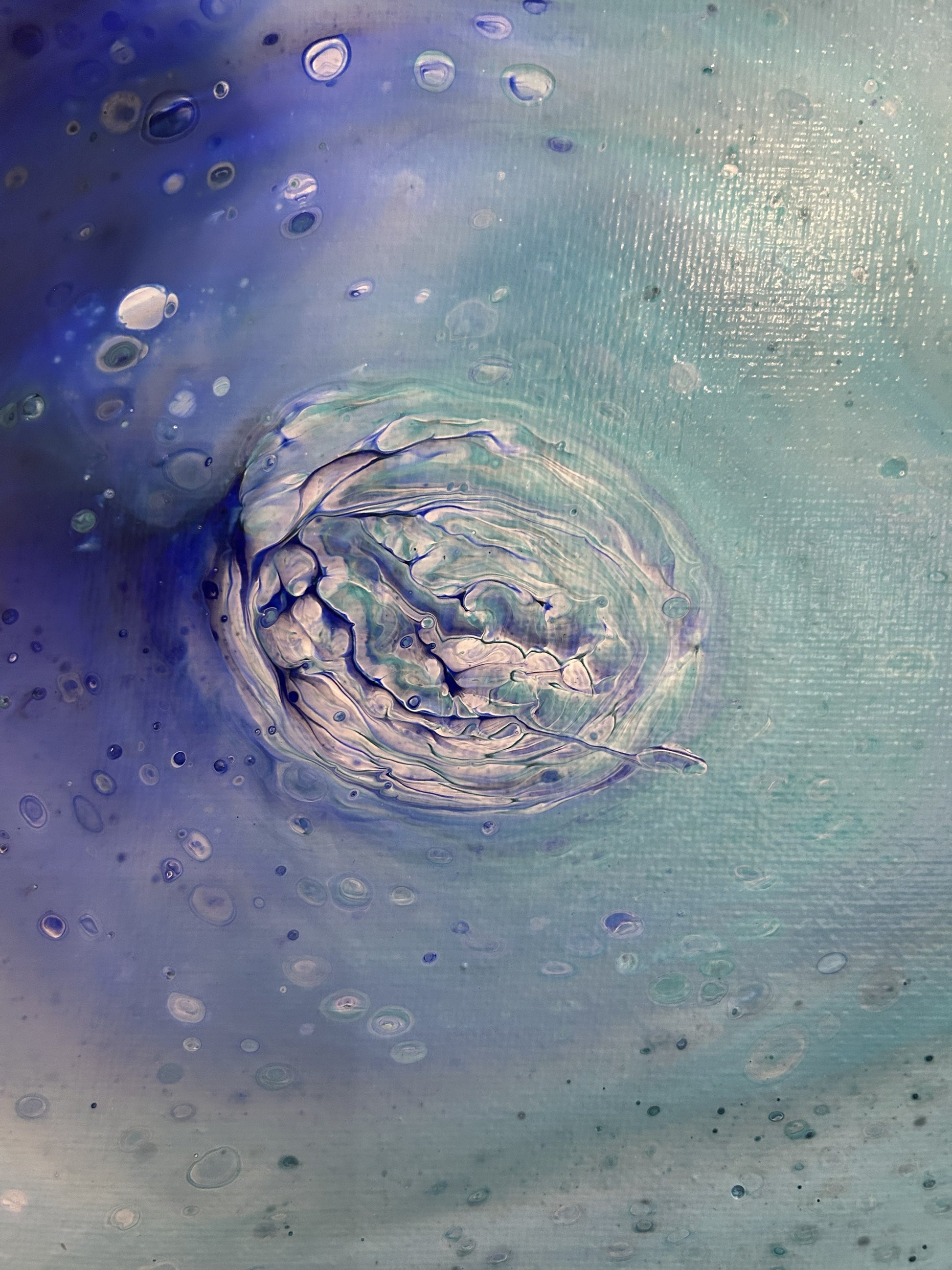 Greens and blues softly blend together, cells providing details. A relaxing piece to add serenity to any space.