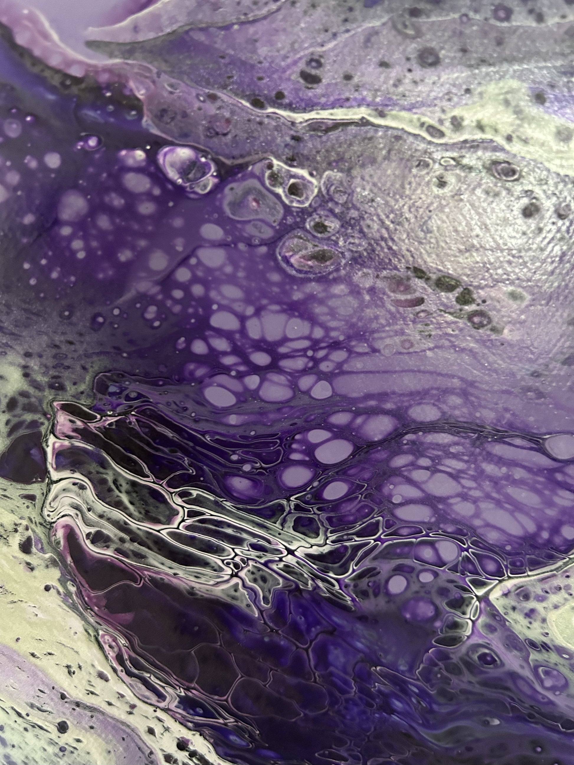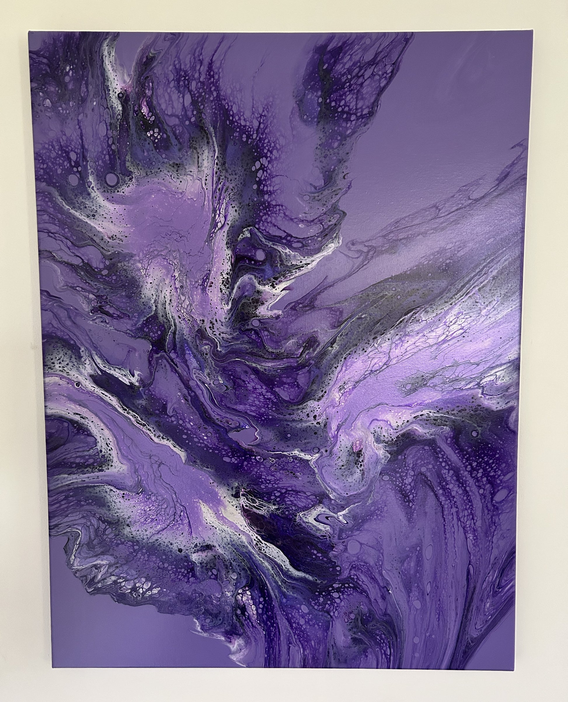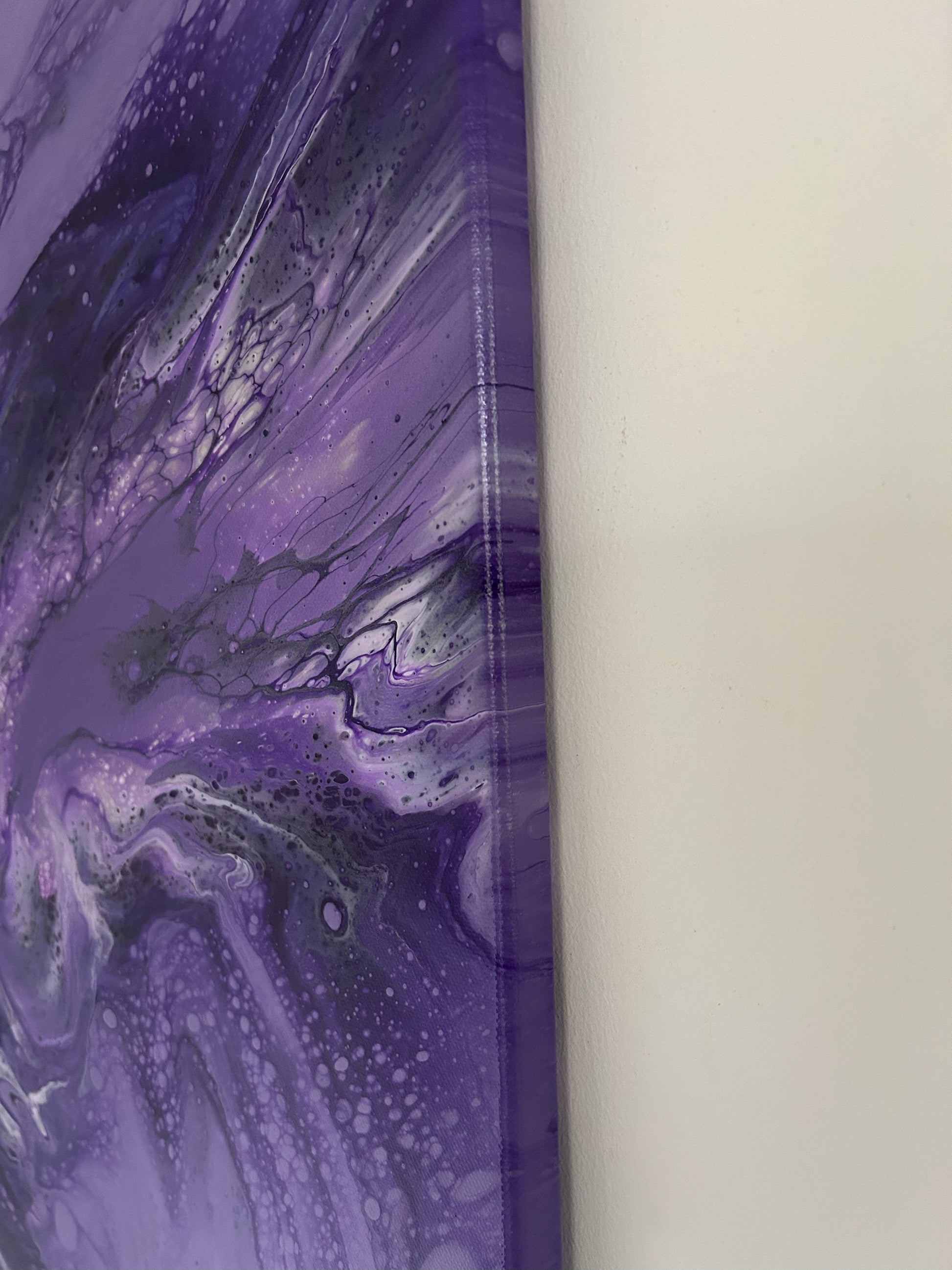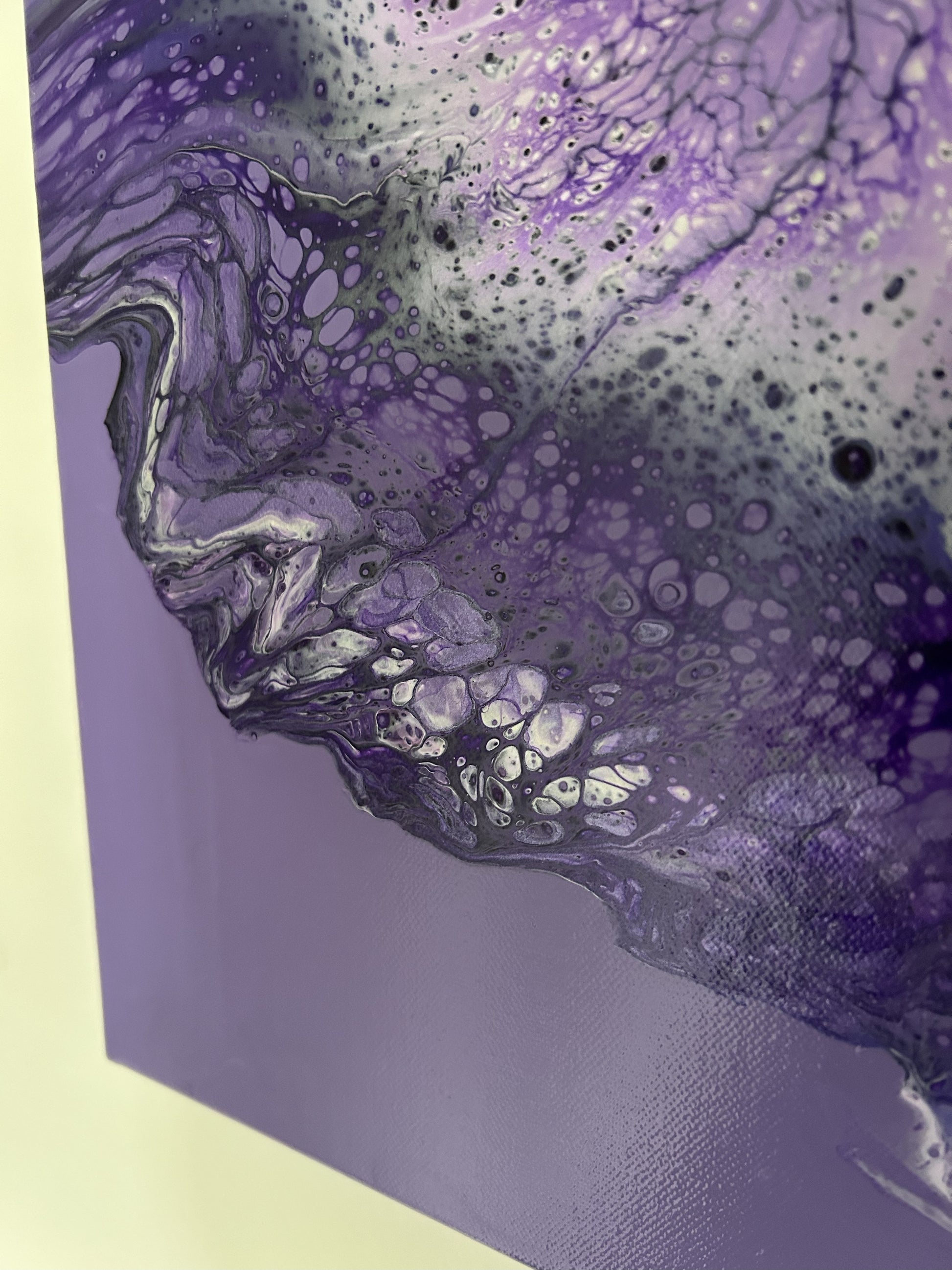 Violet hues combine to dance across the canvas in this piece full of details and softness.