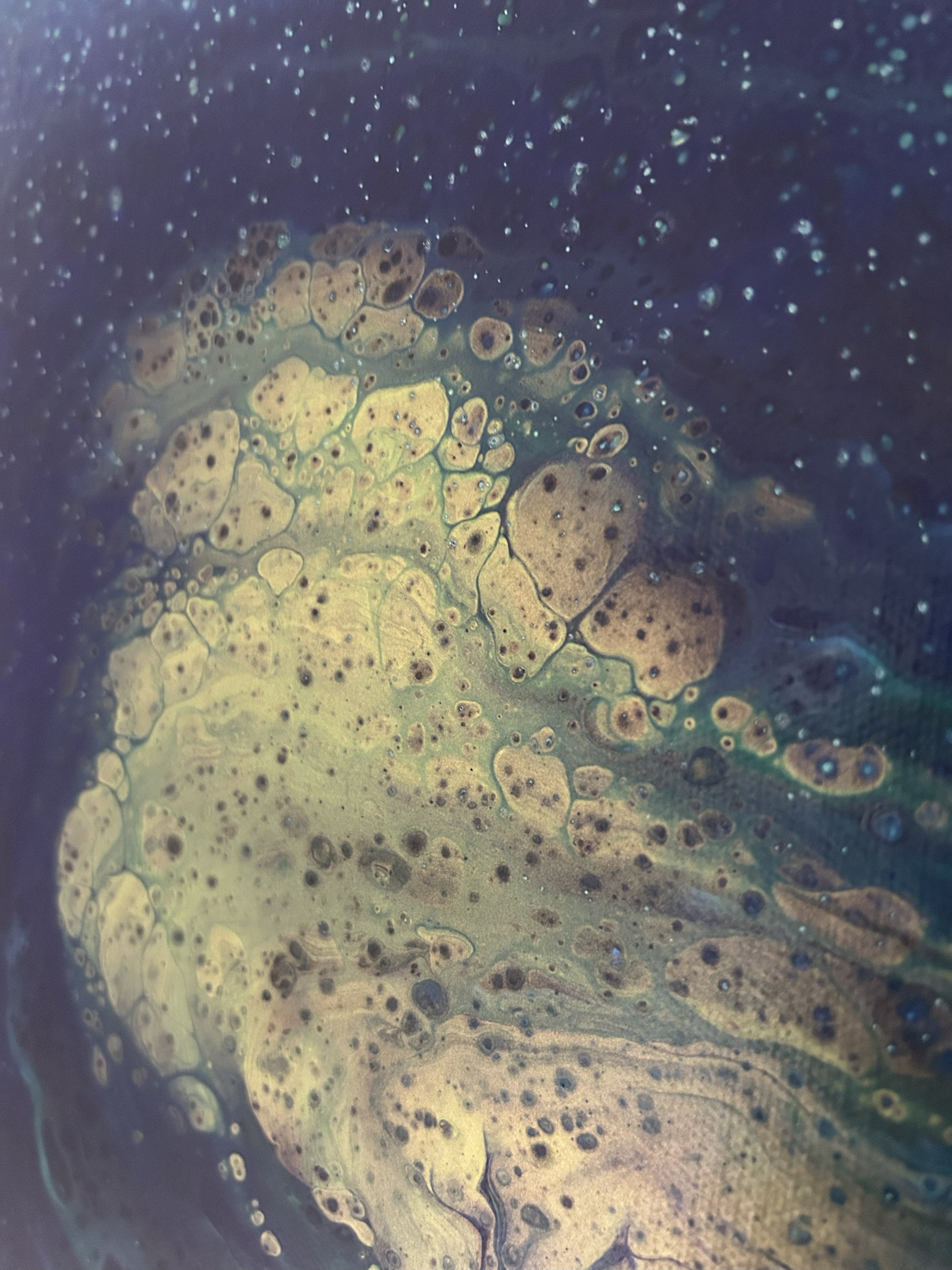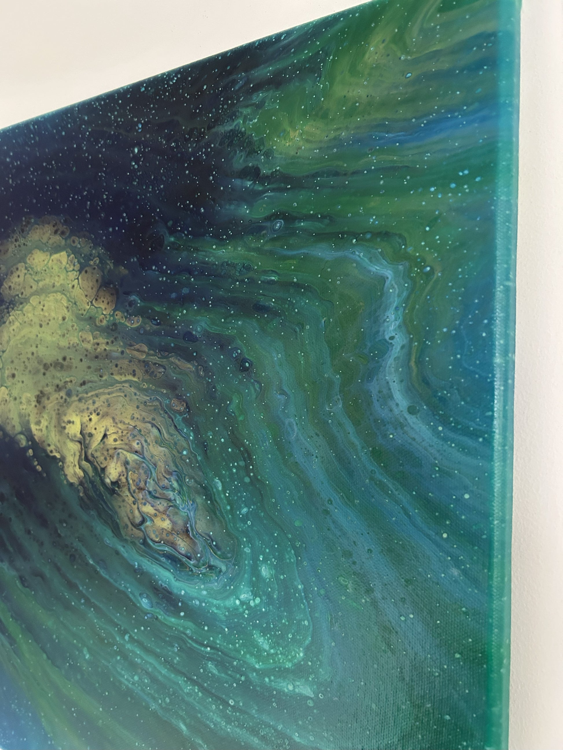 Rich blues and greens blend to create this other worldly backdrop for the golden aurora.