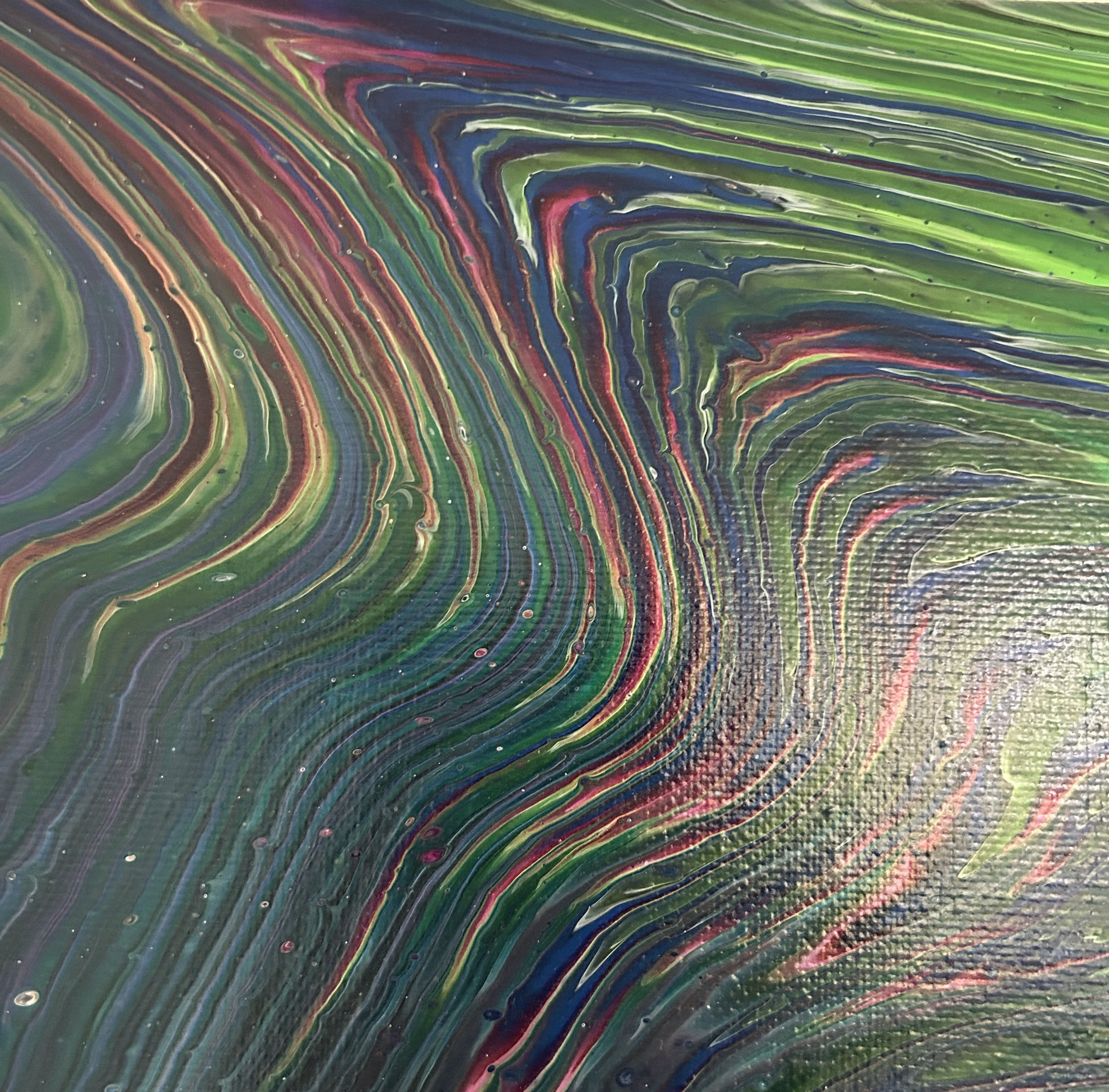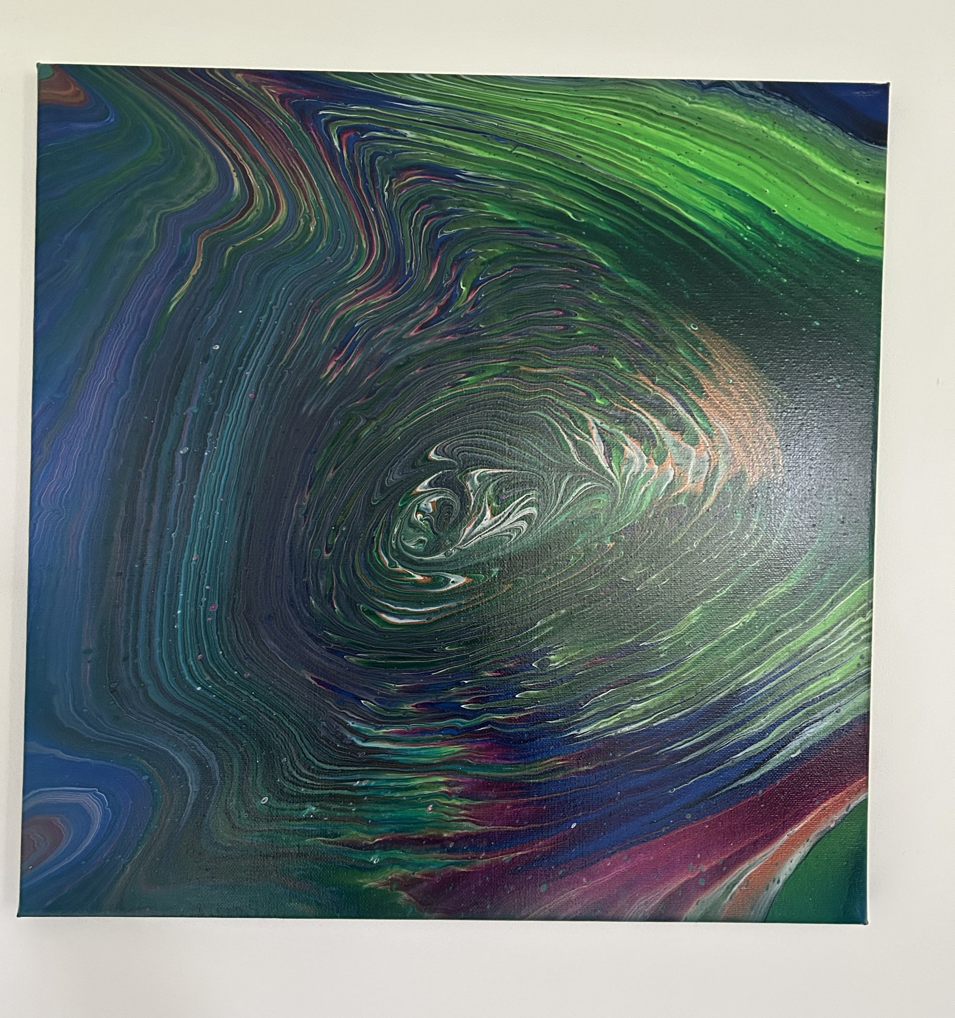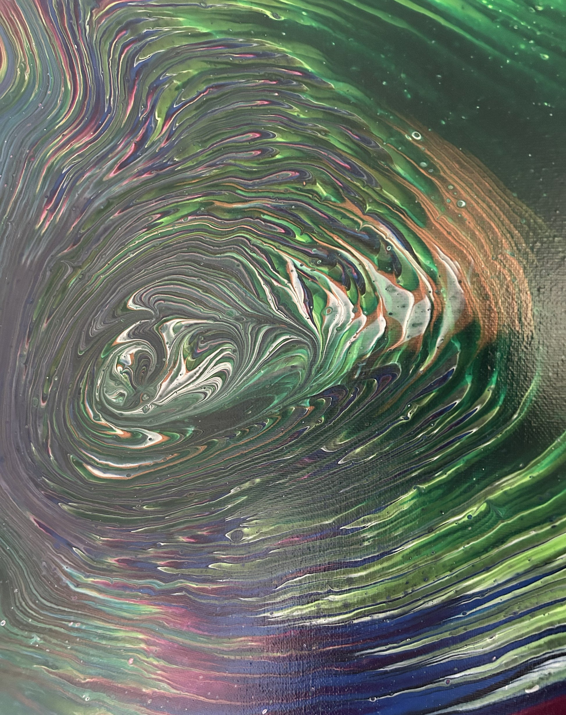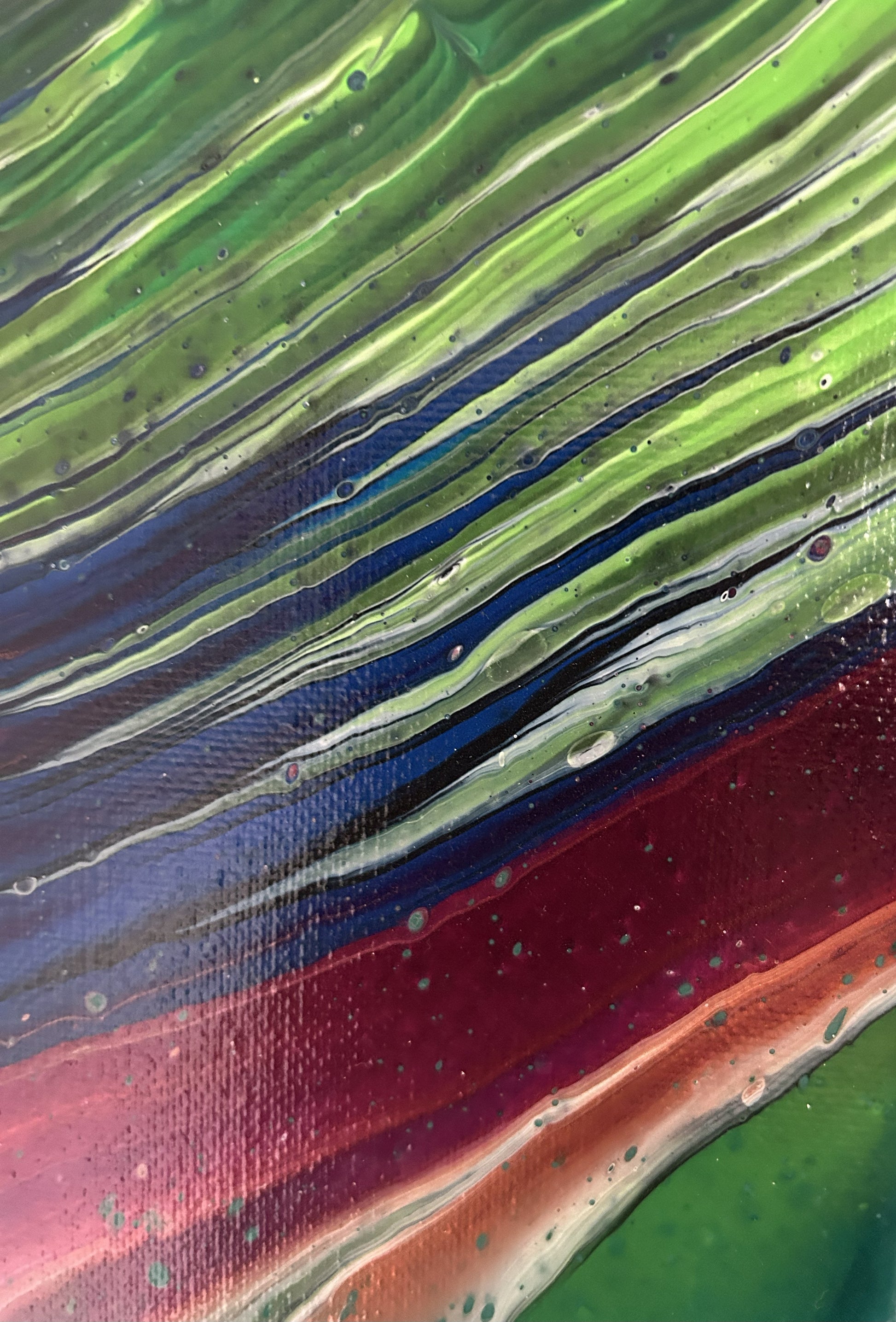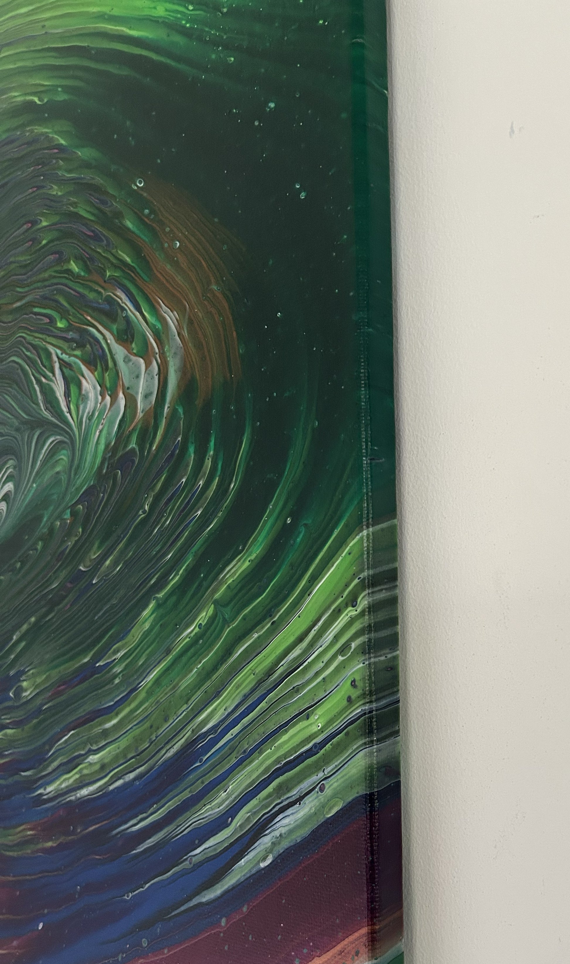 This piece echoes the colours of the aurora in the skies of the Scottish Highlands.
