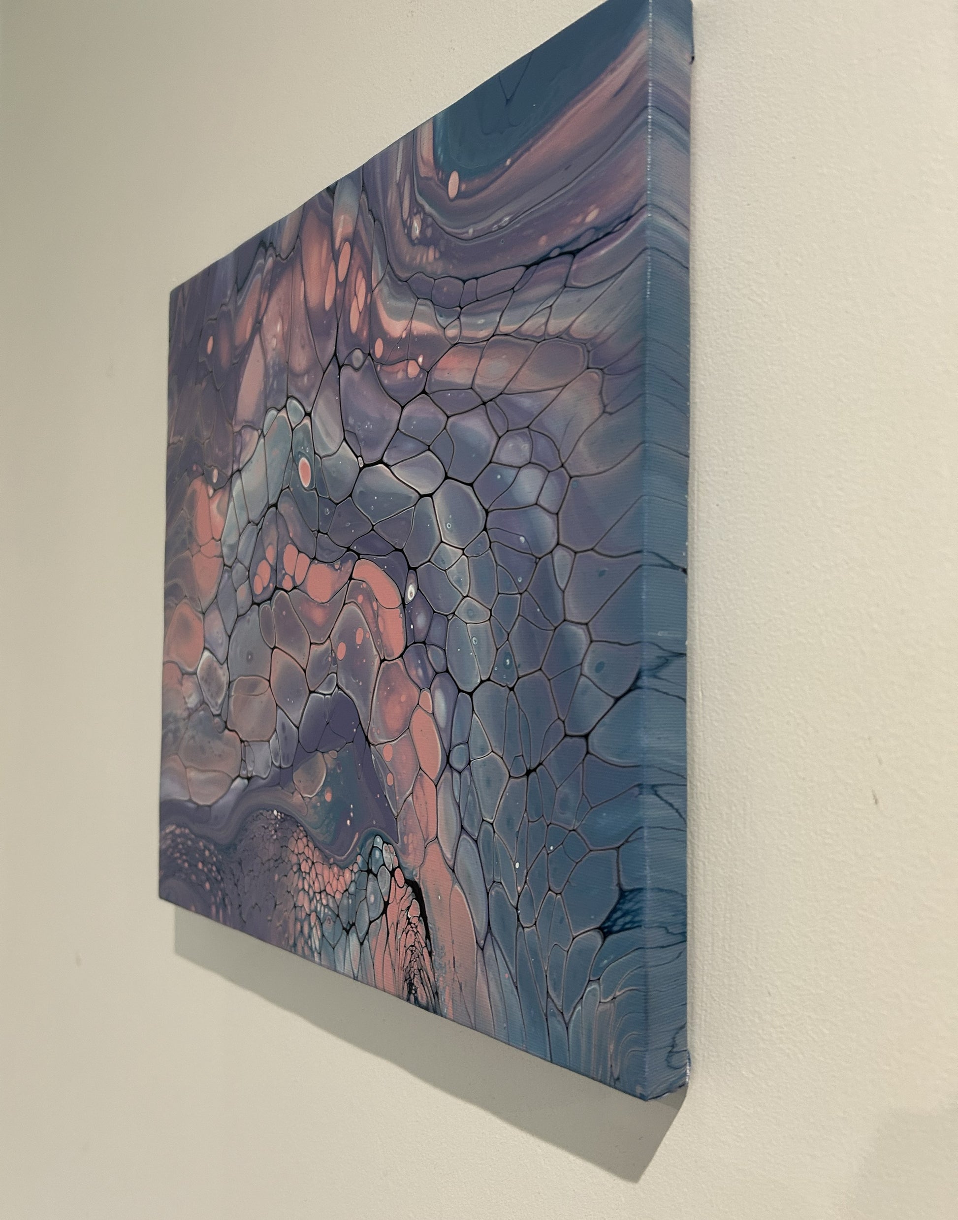 Warm blues, lilac and blush give this up close perspective of bonnie Scottish heather.