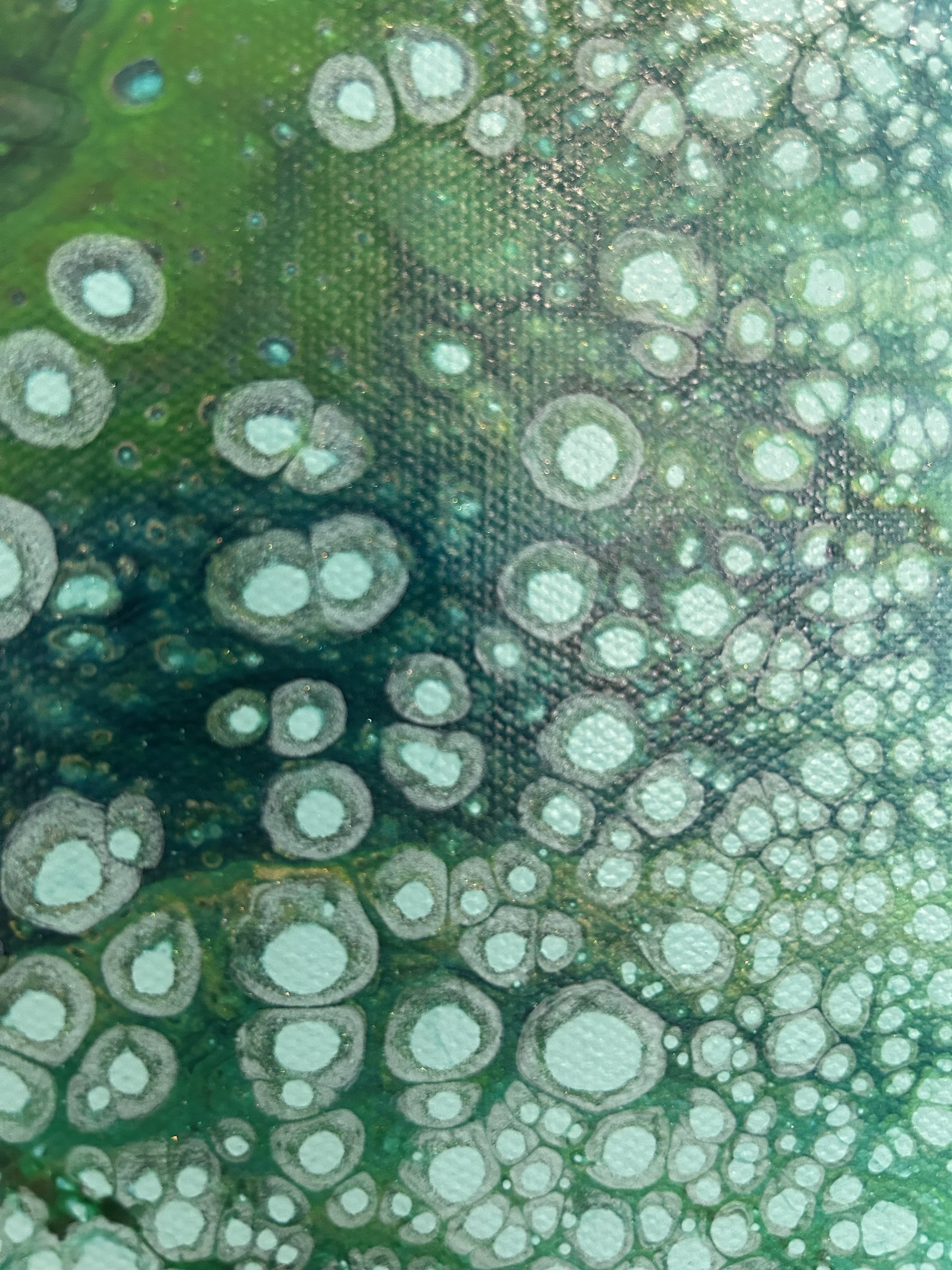 A benevolent eye and smile shines out from this piece, surrounded by gorgeous green pearl cells.