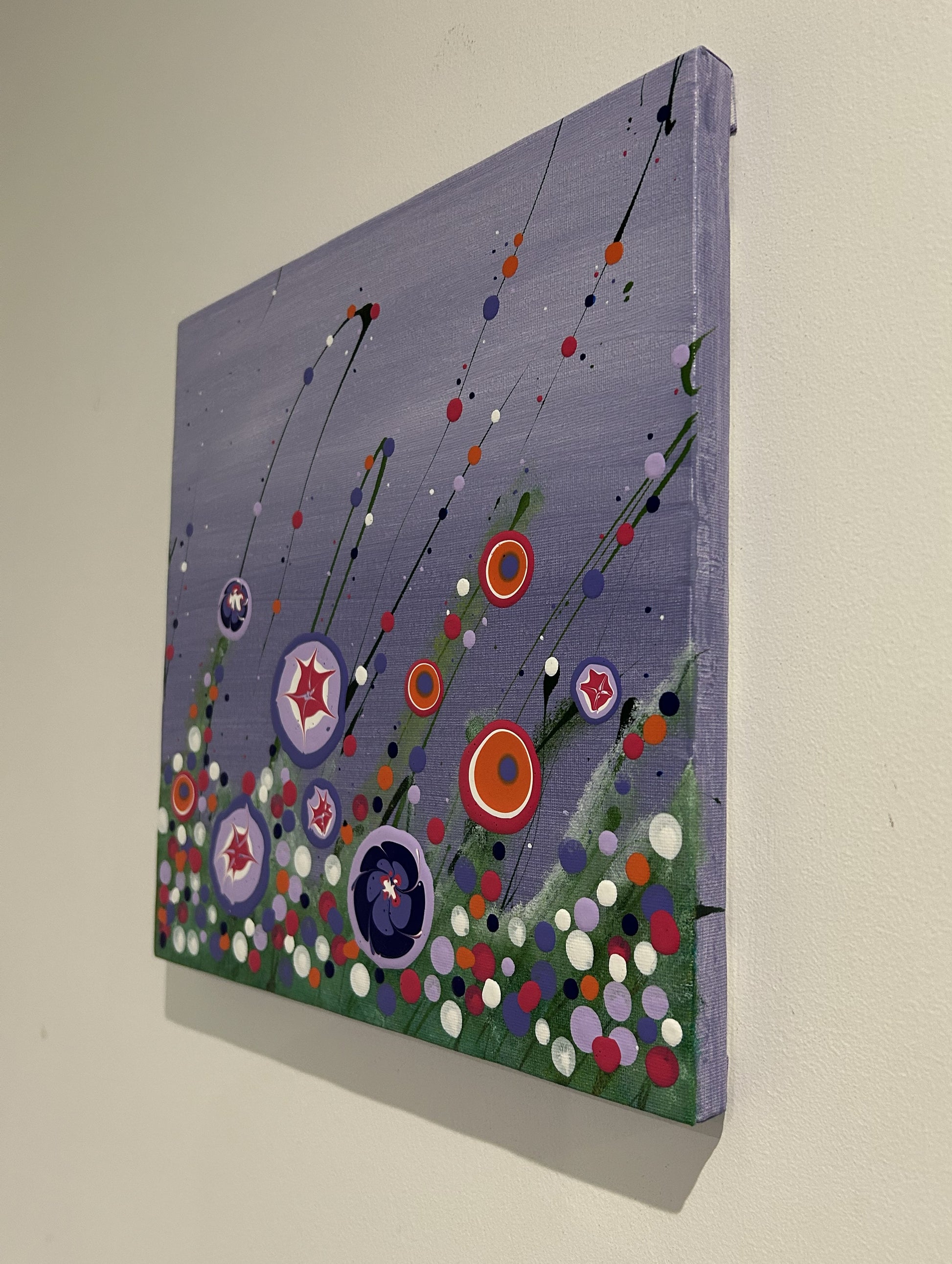 The pale violet background showcasing the bright floral pops, spreading joy!