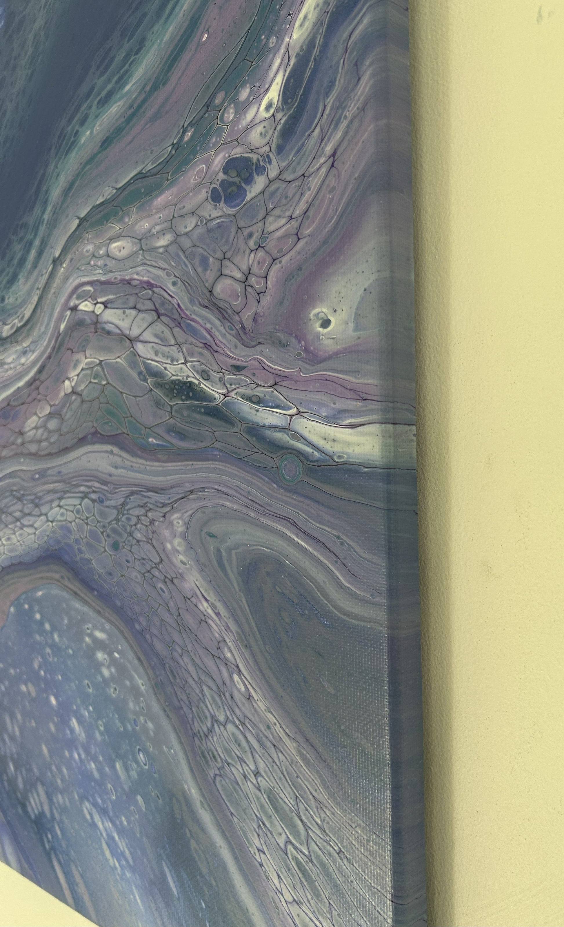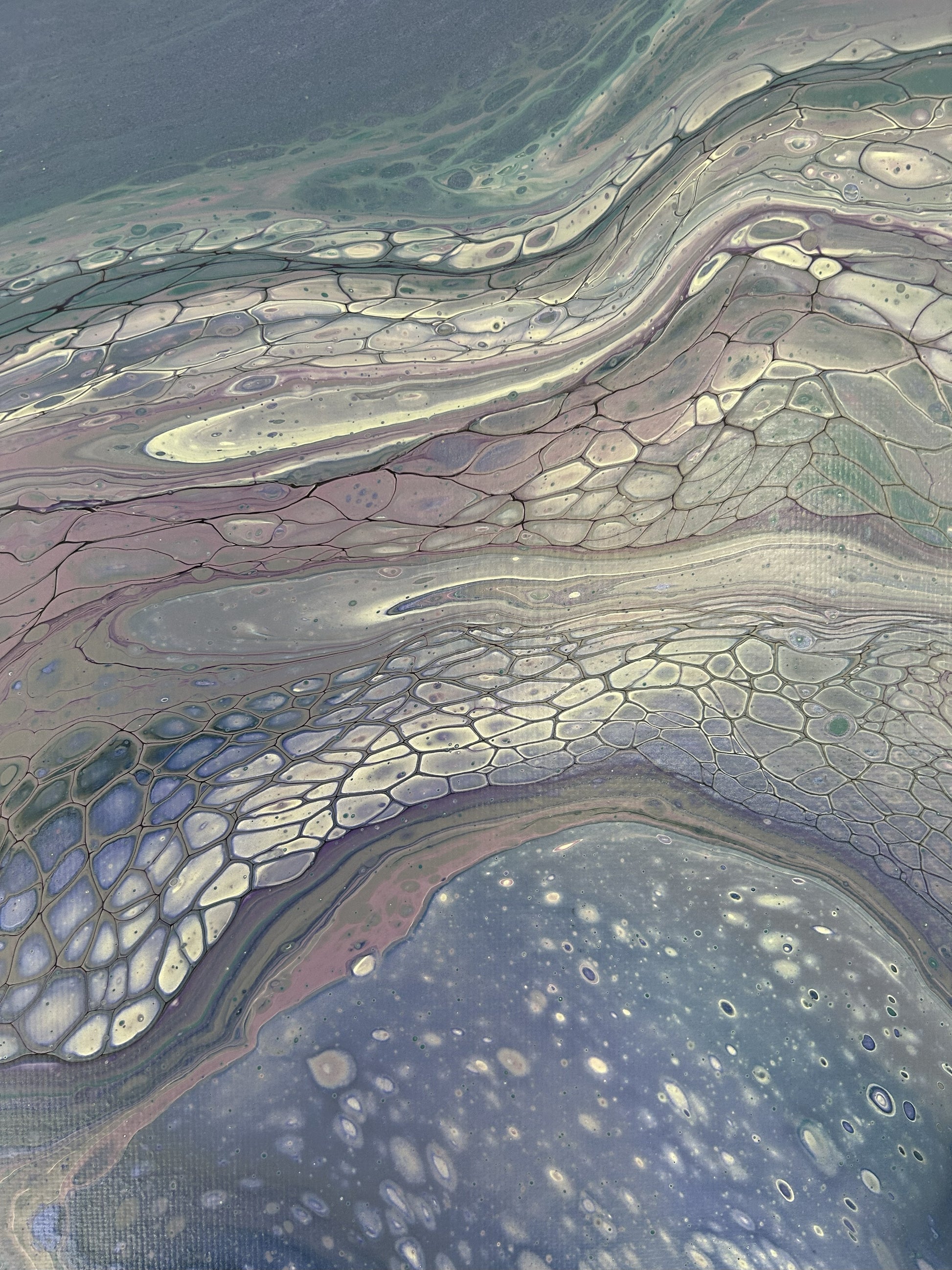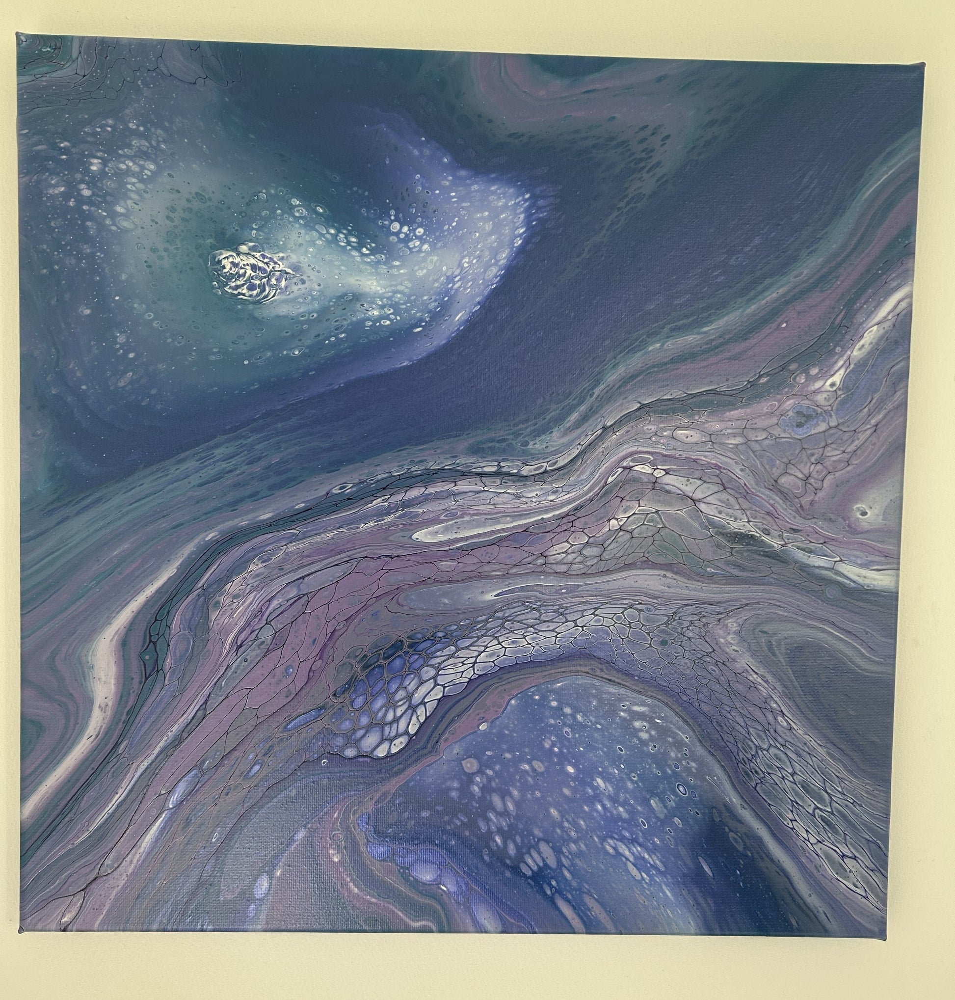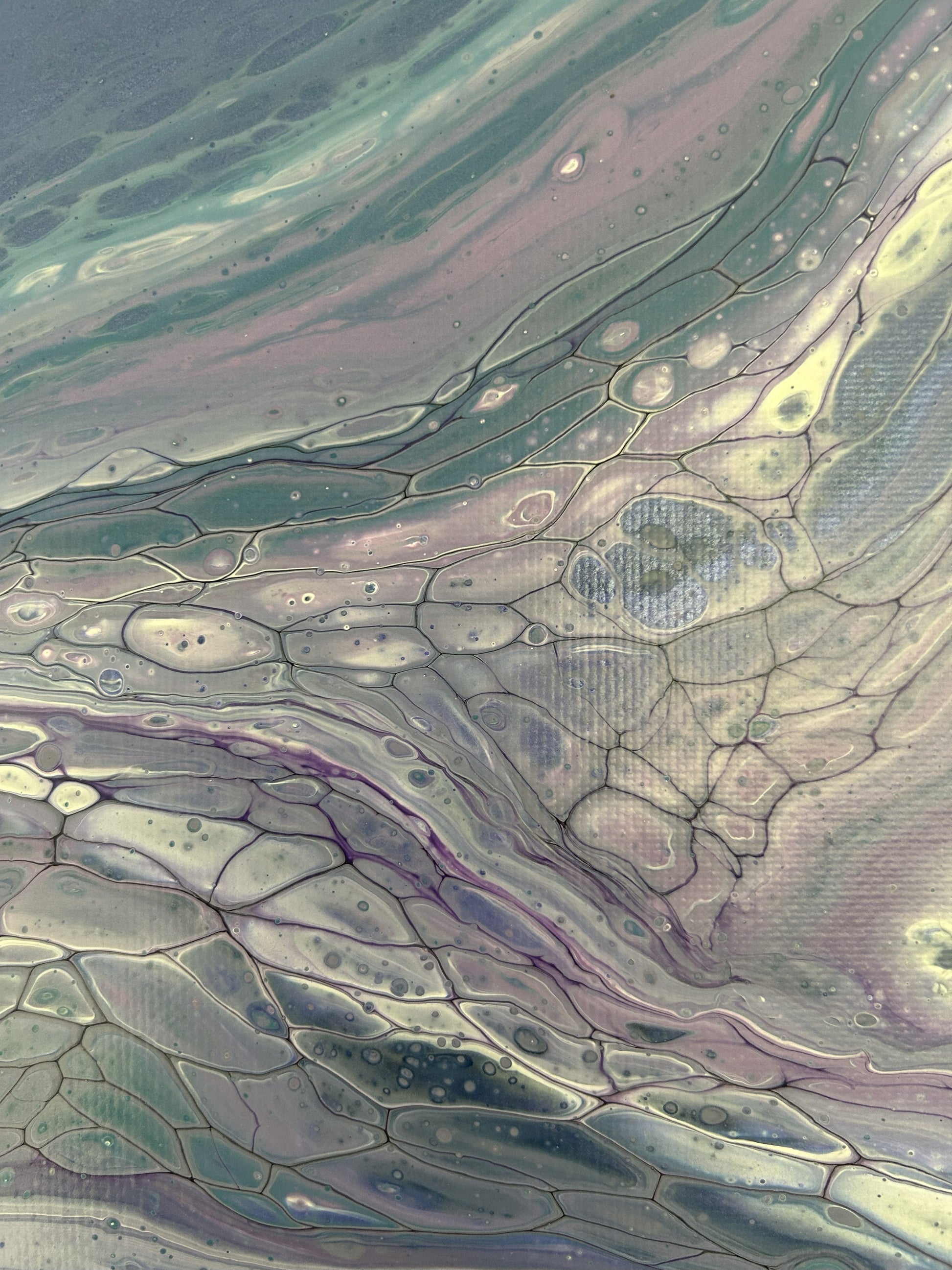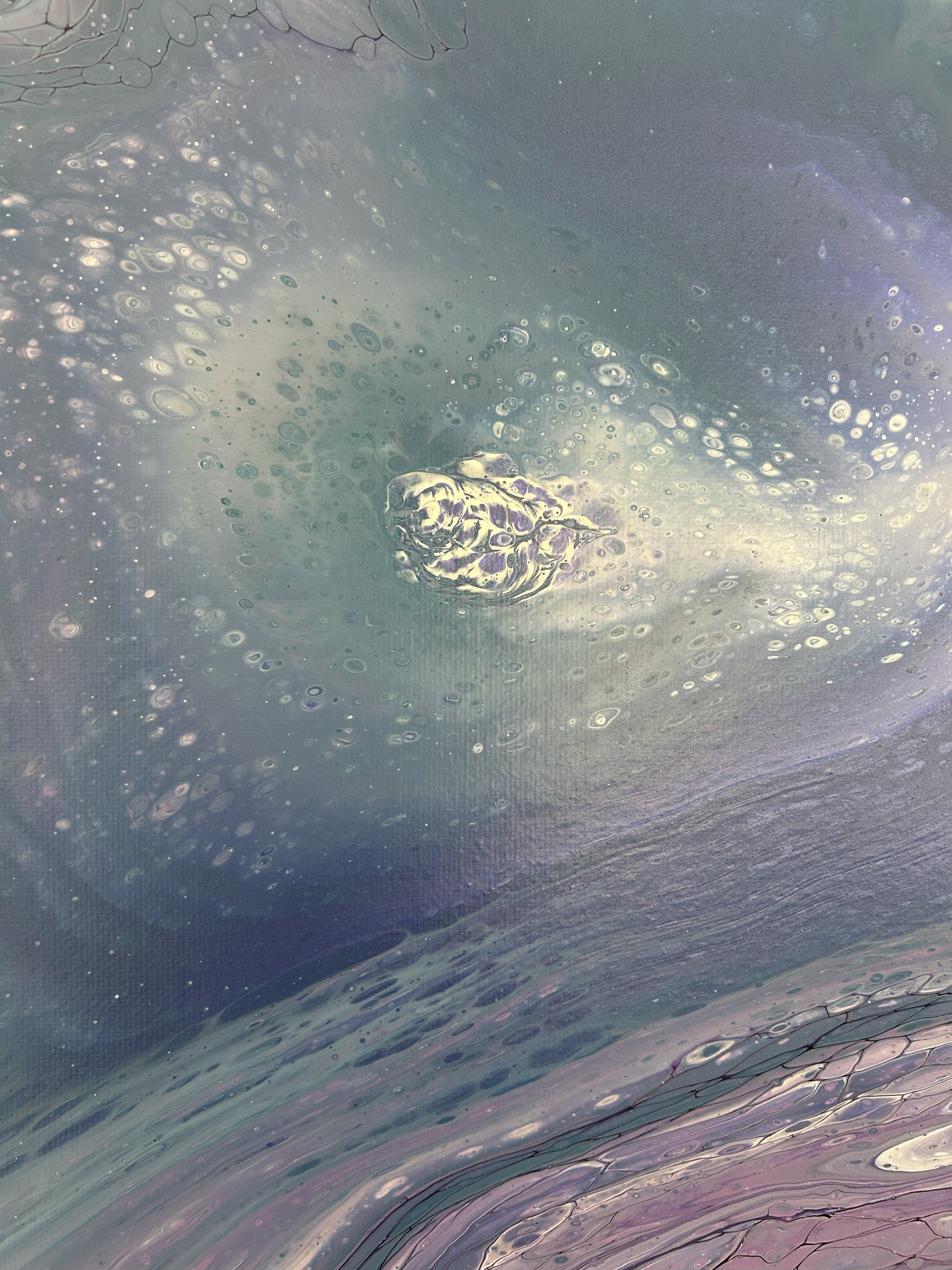 Soft blues, greens and lilacs melt together to create this gentle relaxing painting.