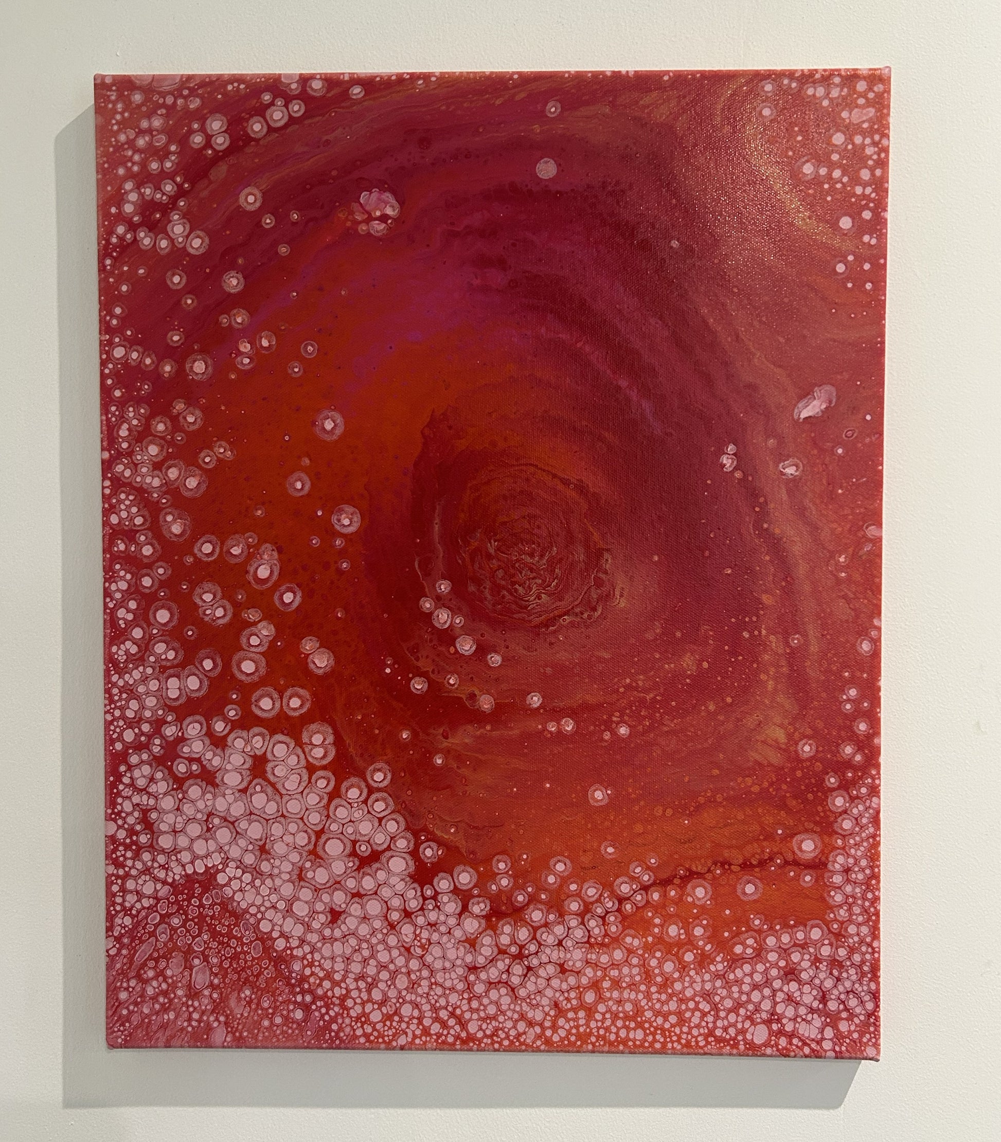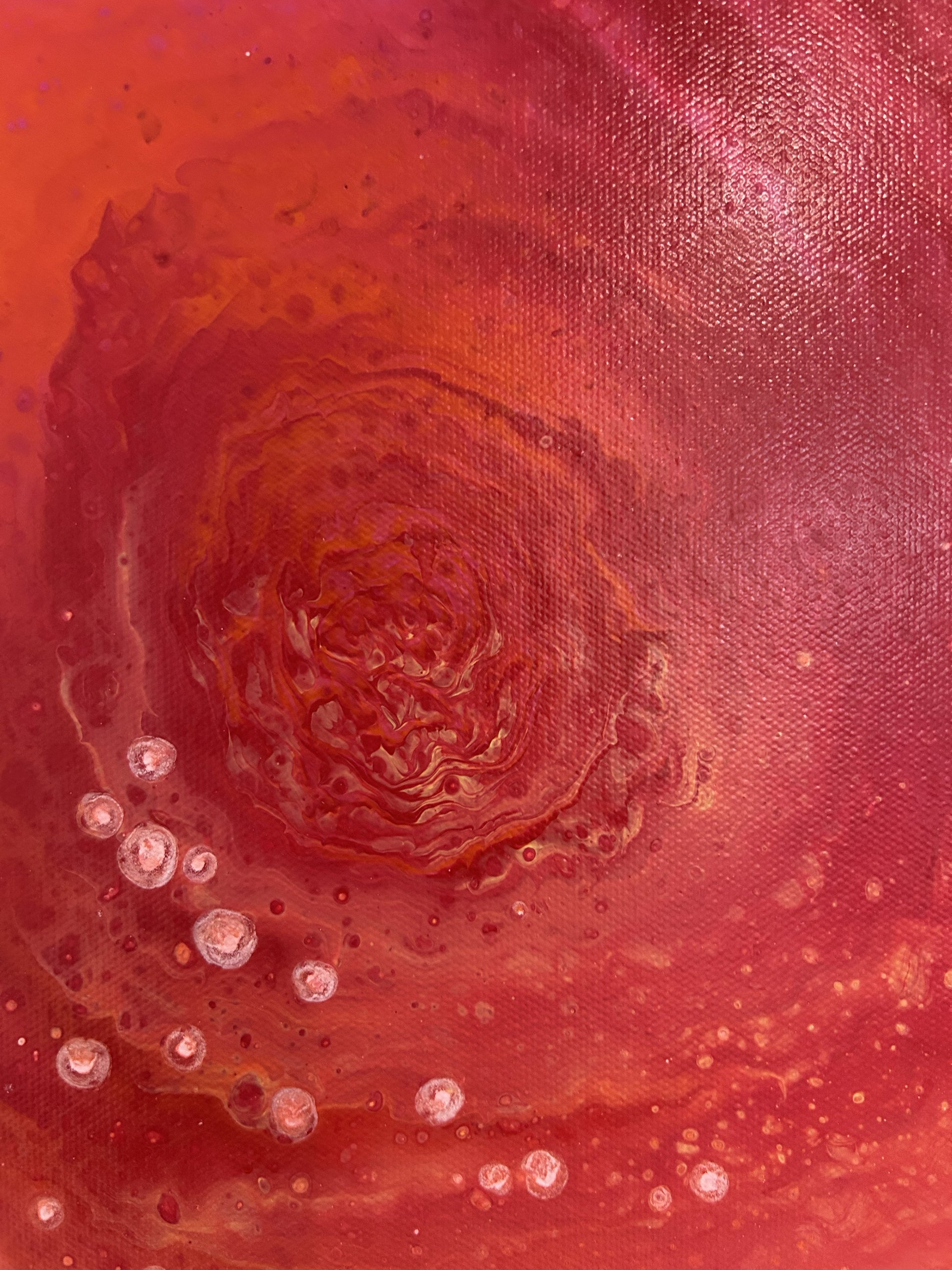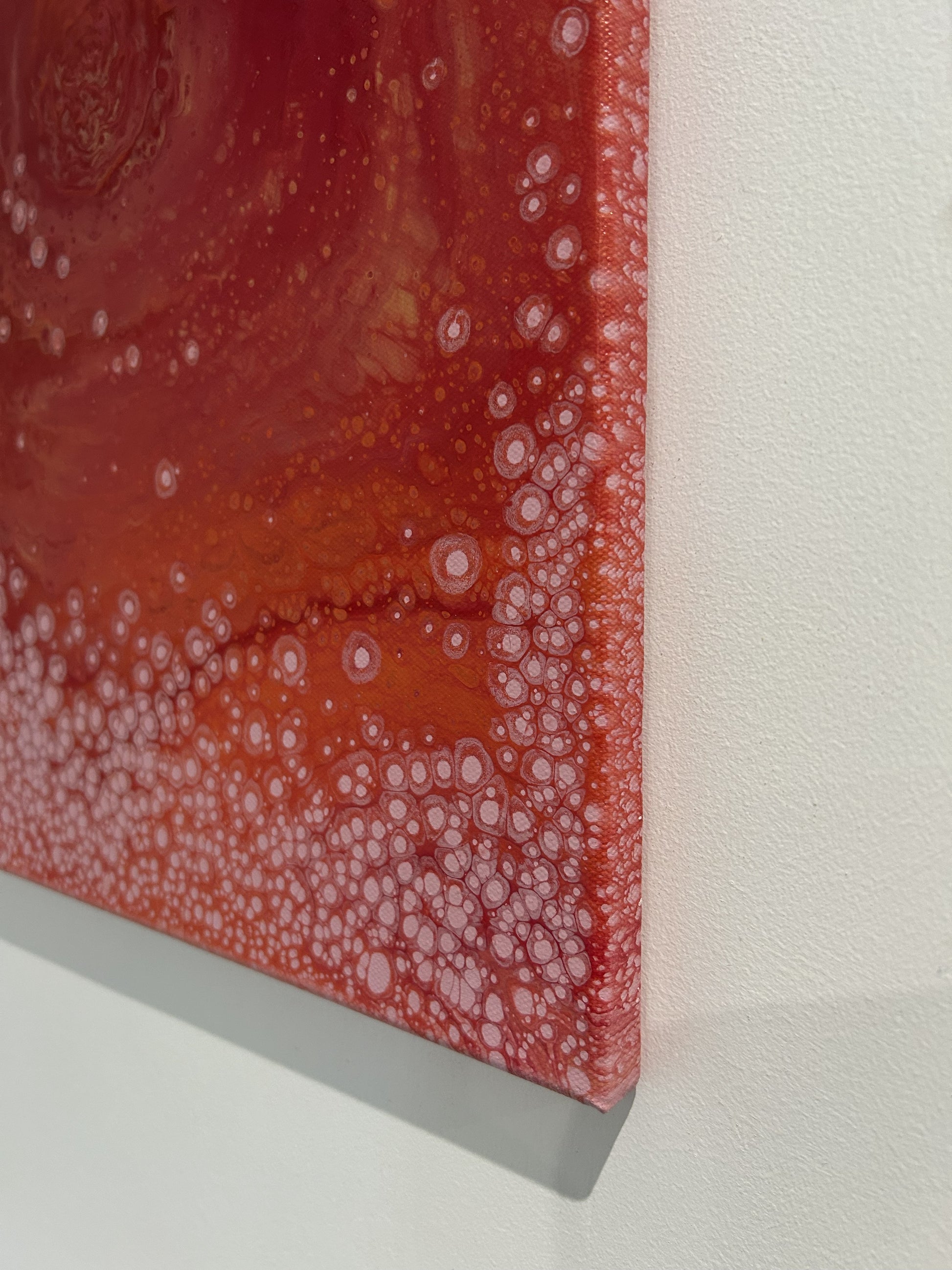 This warm piece draws you in to the rich red centre with pale pink pearl cells highlighting the exterior.
